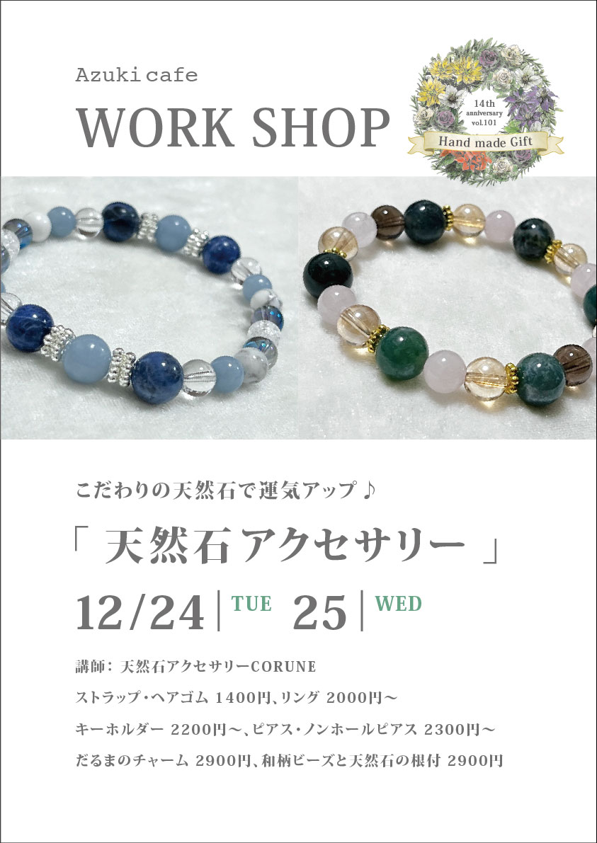 心温まるクリスマスギフトが揃う 〜クリスマス HANDMADE MARKET 2024 〜 上質なアクセサリーや小物、雑貨など、大切な人への贈り物にぴったりな作品が集まります。 恒例のワークショップでは、たくさんの素敵な体験をご用意してお待ちしております!
